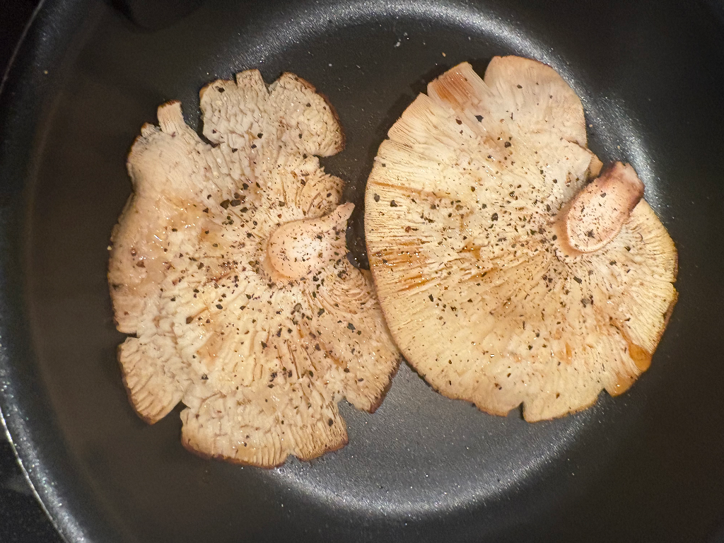 そして、題名の通りに祖父母が作っている椎茸をもらいましたので椎茸ステーキ(丸焼き?)でいただきました。味付けはシンプルに塩コショウのみ。
