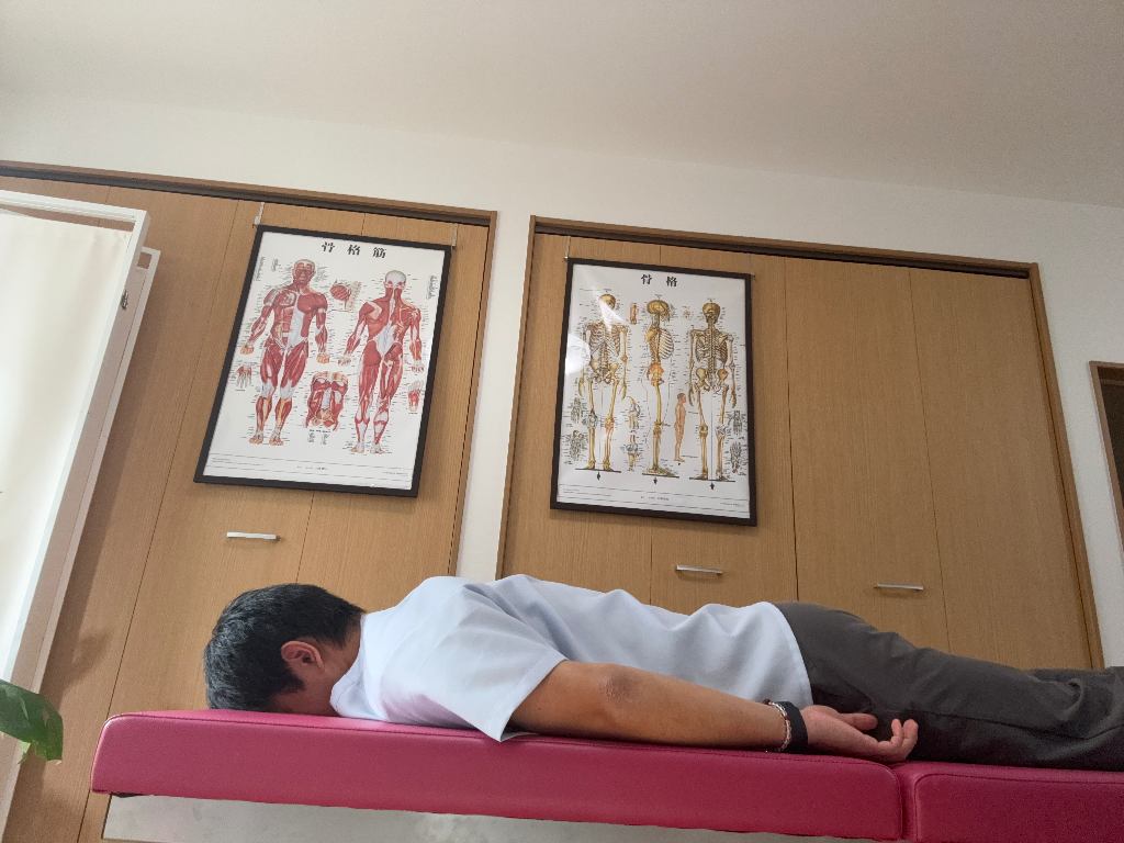 このマッケンジー体操は慢性的な腰痛や坐骨神経痛の症状軽減し、背骨(首・背中・腰)や手足の関節の痛みの改善にも有効と言われているので、日常的に行うこともおすすめしています。寒く丸まって寝たりする方にもおすすめです。