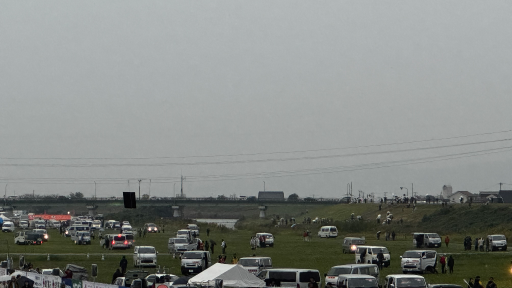 雨が若干チラつくなか、開催か中止かがギリギリまで決まらないまま7時に多くのギャラリーが見守るなか、なんと"黒旗"というアナウンス。。。