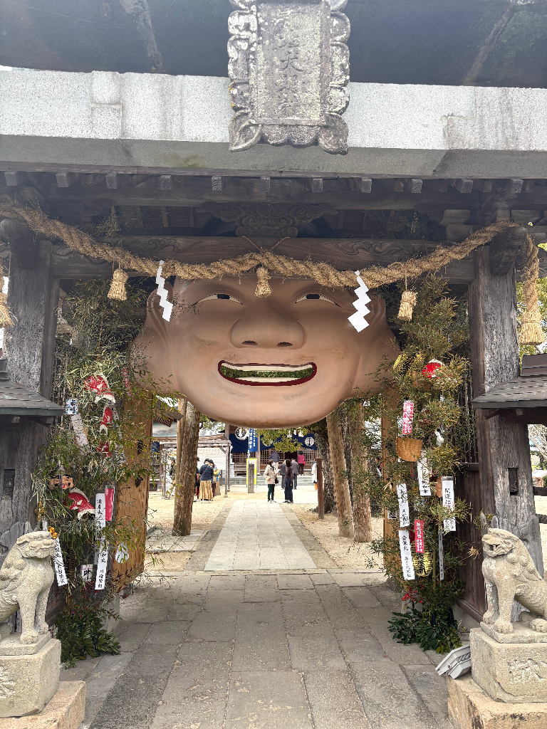 御神門には恵比須様のお面が掲げられており、なんと3mの巨大サイズです。こちらも新春限定のようです。
