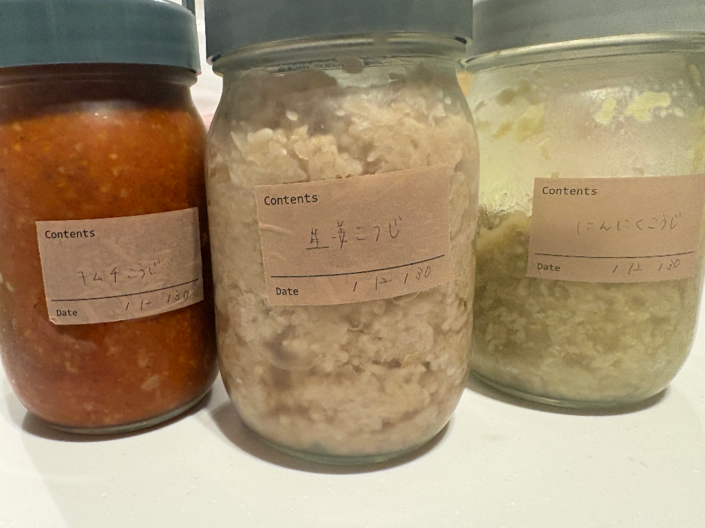 年末年始の休暇中に生姜麹、にんにく麹、キムチ麹の3種類の仕込んでおりました。といっても特別なことはしておらず、水に乾燥麹、食塩、食材を加えて電気圧力鍋のスイッチを押すだけです。