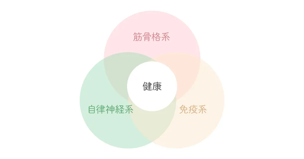 当店の施術では筋骨格系・自律神経系を整え、心と身体が持つ自然な働きを引き出すことを目指しています。